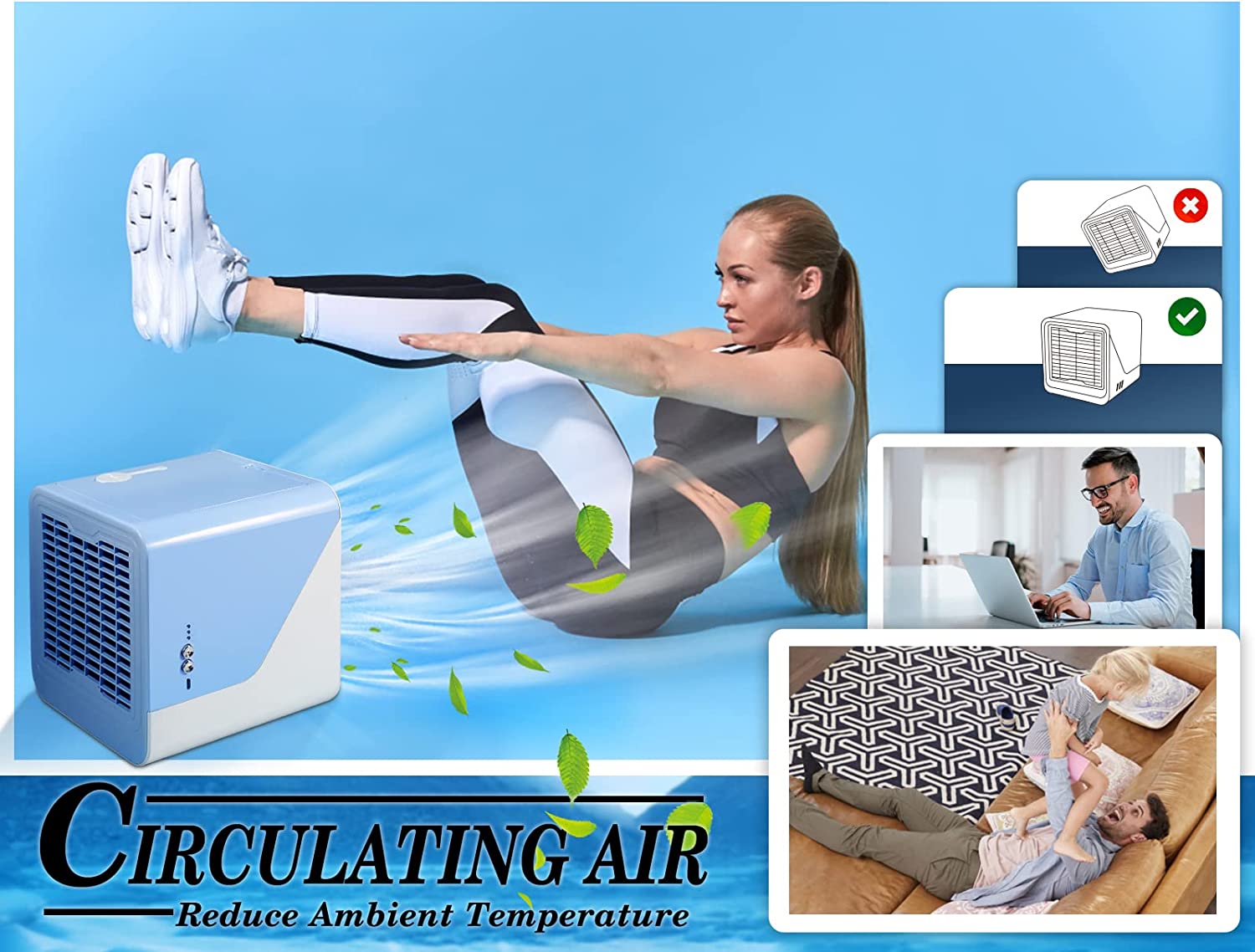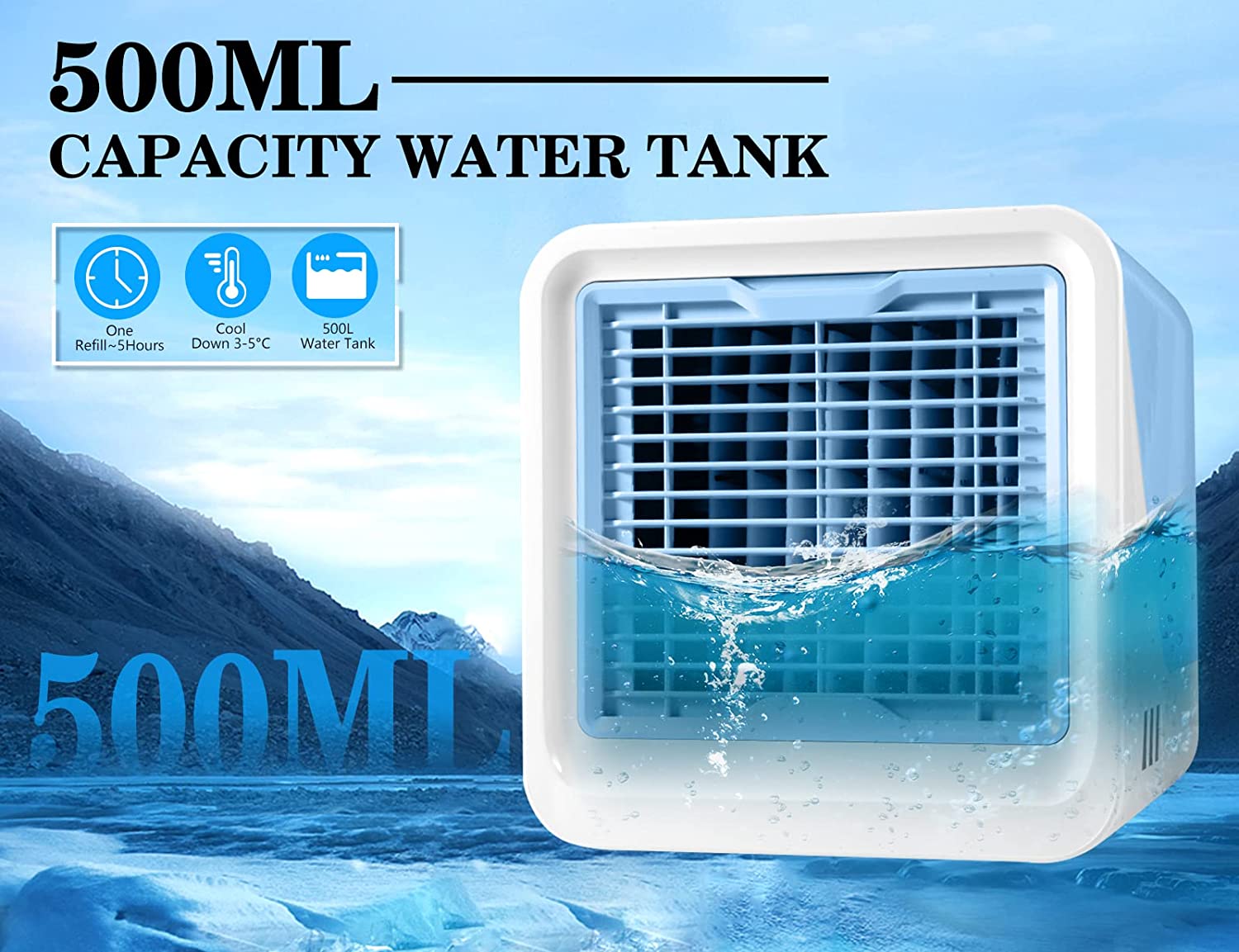 Equipped with a 500ml water tank, this portable air conditioner offers continuous cooling for an extended period. The water tank effectively humidifies the air, providing a pleasant and refreshing atmosphere. Plus, with the added benefit of a USB port, you can easily power up this air conditioner using your laptop, power bank, or any USB-enabled device. Enjoy the freedom to cool your space whenever and wherever you need it.