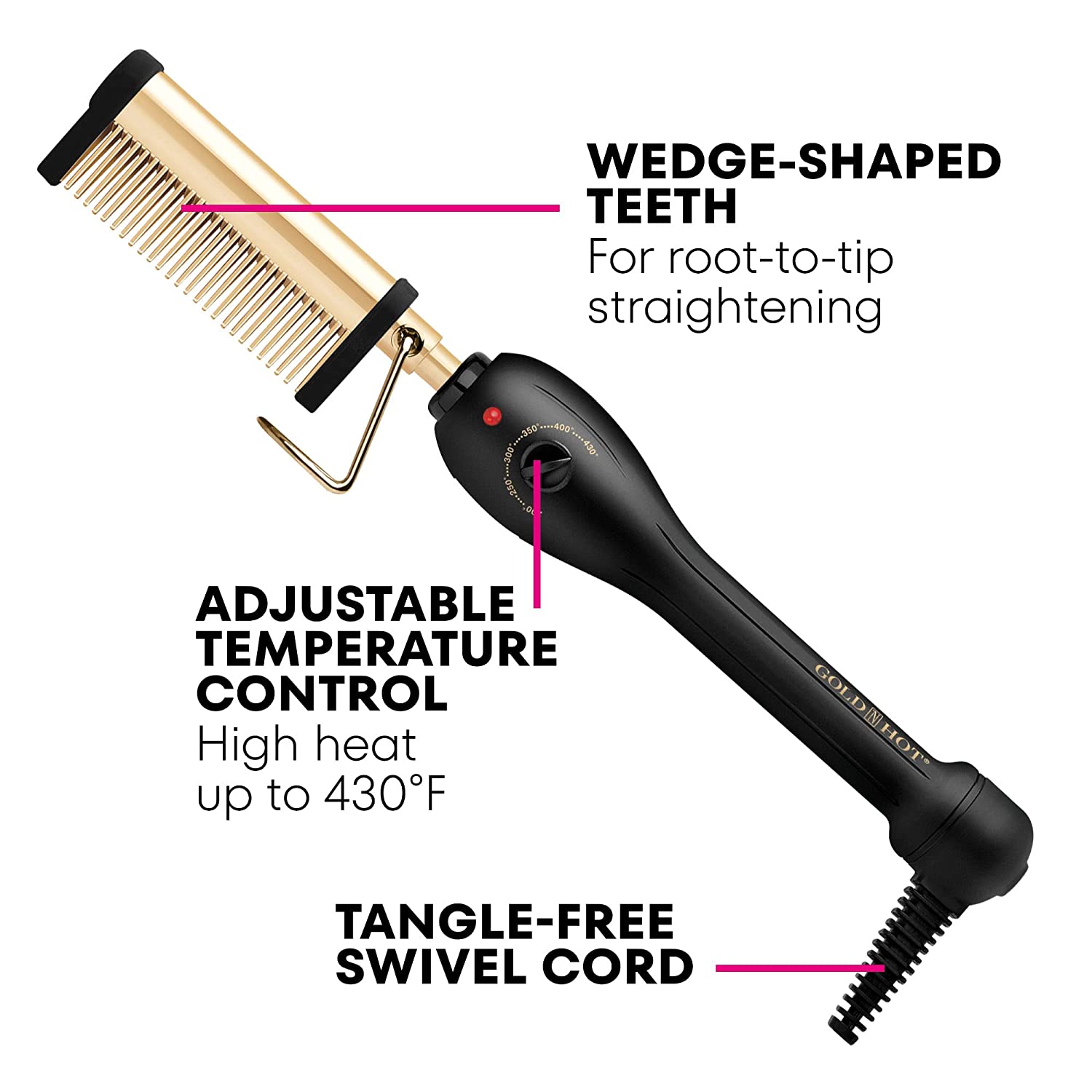 Whether you want to create sleek, straight hair or add volume and body to your locks, the Gold N Hot Professional 24K Gold Pressing & Styling Comb is the perfect tool for achieving your desired look. Its versatility and ease of use make it a must-have for anyone who wants to achieve salon-quality hair styling at home.